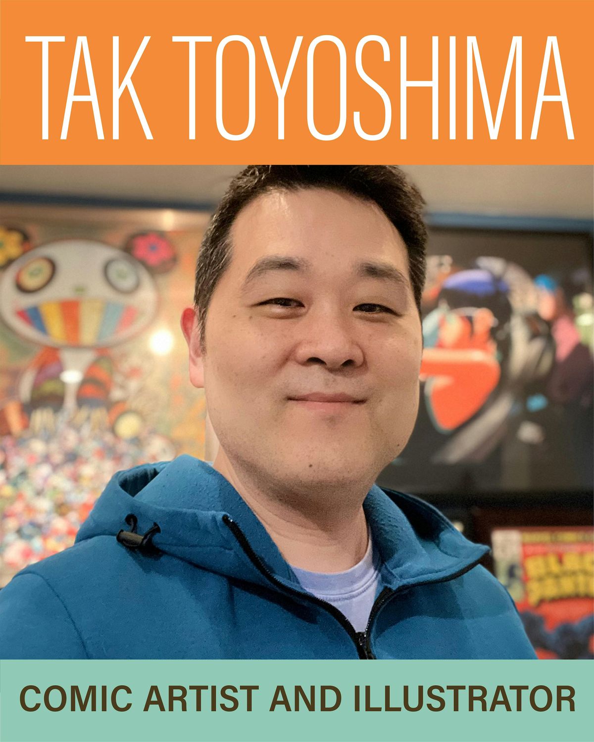 Born and raised in NYC’s Tribeca neighborhood, Tak Toyoshima is an American cartoonist with over three decades of experience in the comic book industry and is a veteran of public speaking for over 20 years. He is the creator/artist of the comic strip "Secret Asian Man." Starting as a two-page monthly in a Boston-based arts magazine, "Secret Asian Man" became a weekly comic strip for the next six years. In the fall of 2006, "Secret Asian Man" was scouted by United Features Syndicate ("Peanuts," "Dilbert," and "Boondocks") and developed to launch in July of 2007 as the first Asian American comic strip since the days of Bruce Lee and Charlie Chan. The Daily Days, a collection of “Secret Asian Man” daily syndicated comic strips, has gone into its second printing to celebrate Toyoshima’s 25th anniversary of creating SAM.