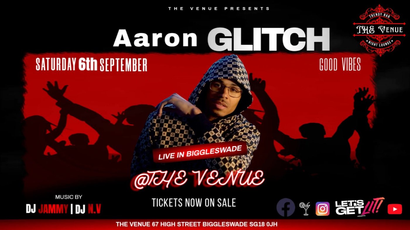 Aaron Glitch is performing LIVE at THE VENUE Biggleswade next Saturday!