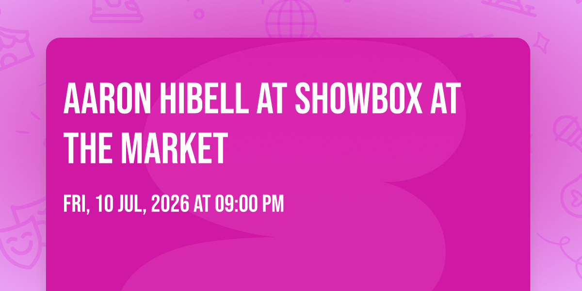 ✨ Experience the magic of Aaron Hibell at Showbox at the Market, where moments become memories that last a lifetime! 🏛️ The iconic Showbox at the Market in Seattle, WA sets the perfect stage for an unforgettable celebration on July 10th, 2026 at 09:00 PM. 🌟 It's been a curated experience that brings together the best of entertainment and innovation, creating an atmosphere of wonder and excitement. From the moment you arrive, you'll be immersed in a world where the ordinary transforms into the extraordinary. 🎊 Book early to secure your place in what promises to be an event that will be talked about for years to come!