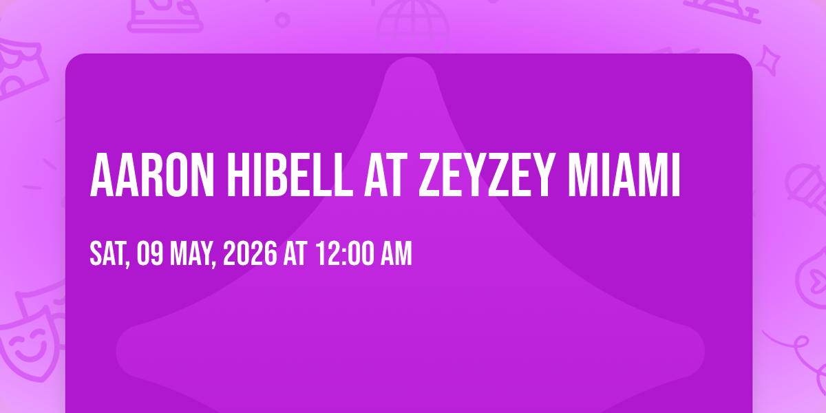 🌟 Step into a world of wonder at Aaron Hibell at ZeyZey Miami, where extraordinary moments await! 🏛️ Located at ZeyZey Miami in dynamic Miami, FL, this event will become the talk of the town. 📅 Join us on May 9th, 2026 at 12:00 AM for a celebration that defies the ordinary. ✨ This curated experience brings together the best of entertainment, culture, and community spirit. Every detail has been thoughtfully planned to ensure an unforgettable experience for all our guests. 🎯 Take advantage of this opportunity to be part of something special. 🎊 Early registration is recommended as space is limited!