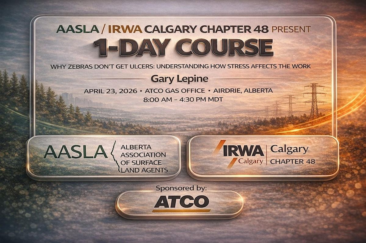 Welcome to the Second AASLA Educational Course offering for the June 2025 to June 2026 year! This course is held jointly with IRWA Chapter 48. Join us for a day long educational and networking opportunity on Thursday April 23, 2026 at 8:00 AM at the Airdrie ATCO Office. This in-person event is a great chance to connect with fellow professionals in a relaxed setting and also learn a thing or two!