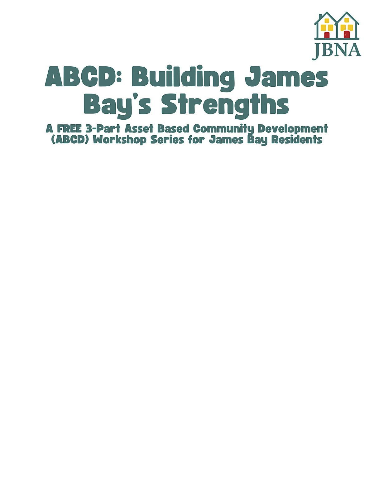 A FREE 3-Part Asset-Based Community Development (ABCD) Workshop Series for James Bay Residents