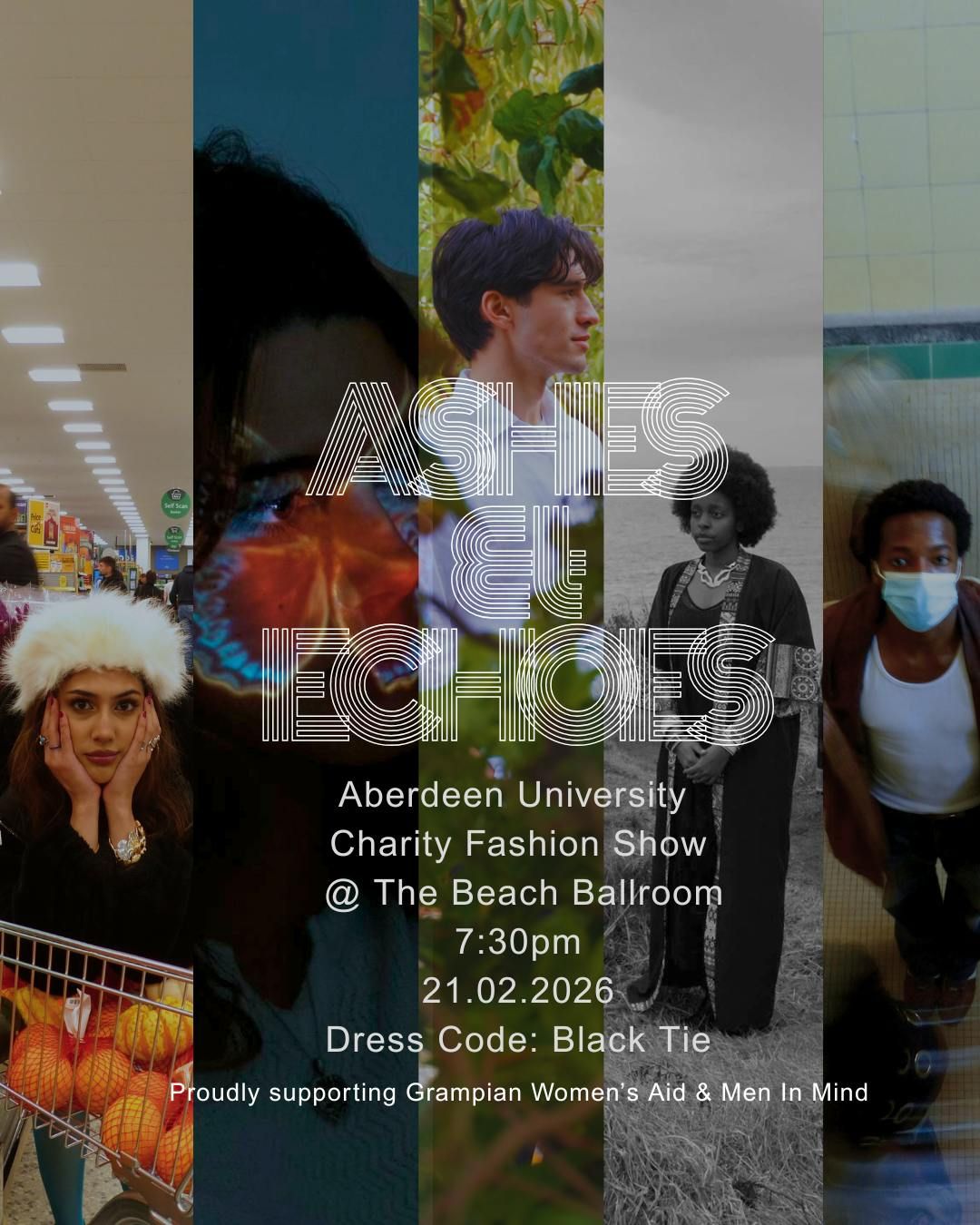Join us for an unforgettable black-tie evening of fashion, creativity, and purpose. The Aberdeen University Charity Fashion Show brings together student designers, models, and creatives for a night celebrating style, community, and change. This year’s theme, Ashes and Echoes, explores transformation, growth, and resilience through fashion and performance. Expect bold designs, powerful storytelling, and an electric atmosphere.During intermission, guests will have the chance to take part in our charity raffle, featuring a range of exciting, high-value prizes, with all proceeds going directly to our chosen charities.