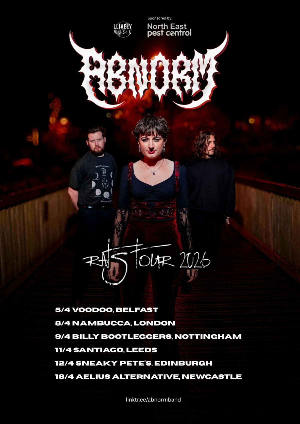 Supports tbaFormed in 2021 by musician, singer, and songwriter Abbie Rose, Abnorm is a fast-rising force in the North East's alternative rock scene. Known for their powerful, thunderous sound and raw, openhearted lyricism, the band delivers anthems that speak to the struggles, passions, and inspirations that drive Abbie's songwriting.