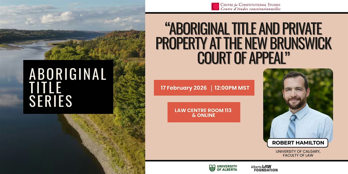 The Centre for Constitutional Studies is pleased to welcome Professor Robert Hamilton for a lecture on the New Brunswick Court of Appeal's 2025Wolastoqey Nation decision and its implications for Aboriginal title.