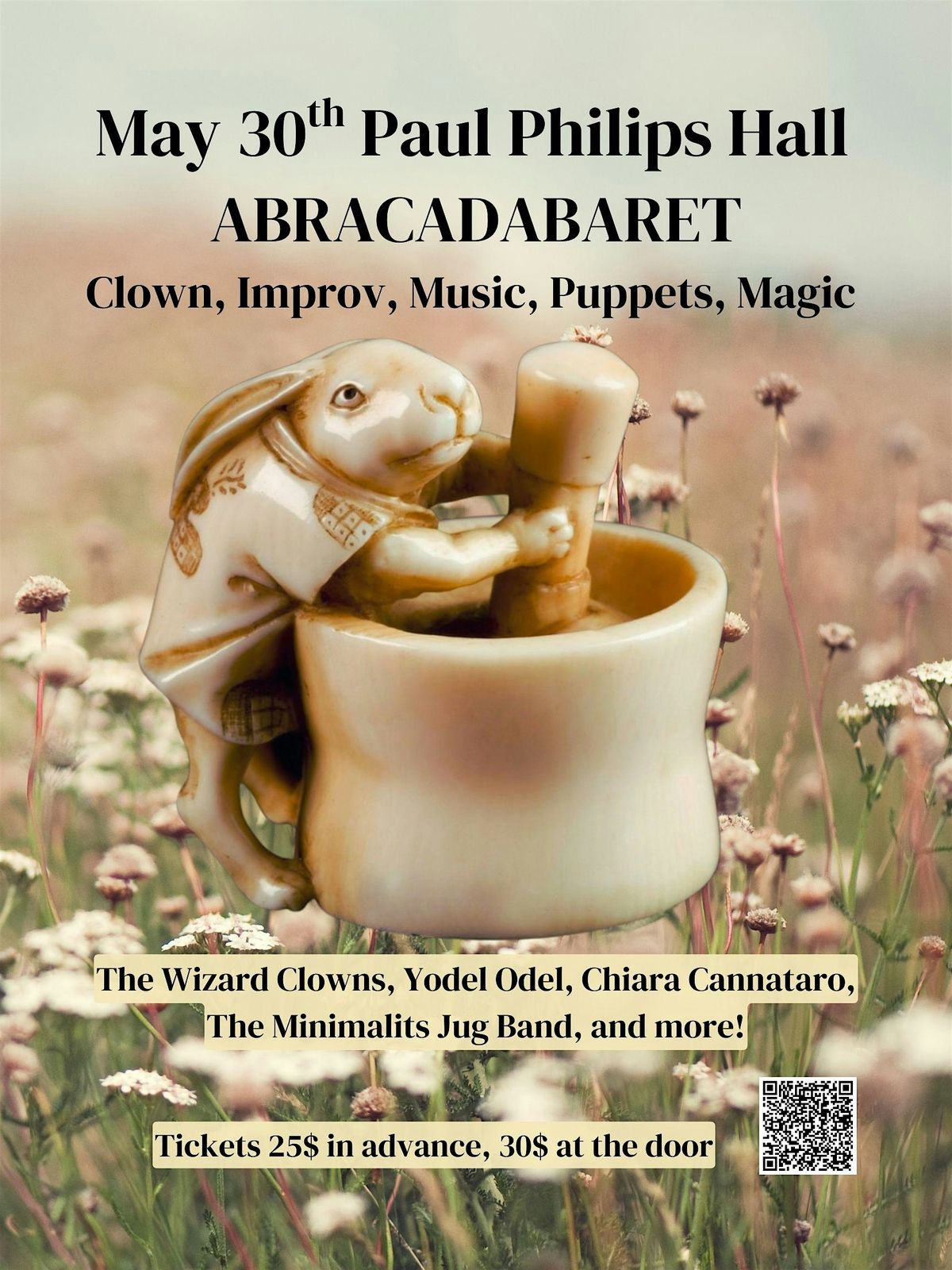A Spring Cabaret filled with delight, surprise, and whimsy. Featuring - clown, improv, music, puppetry, and magic!
