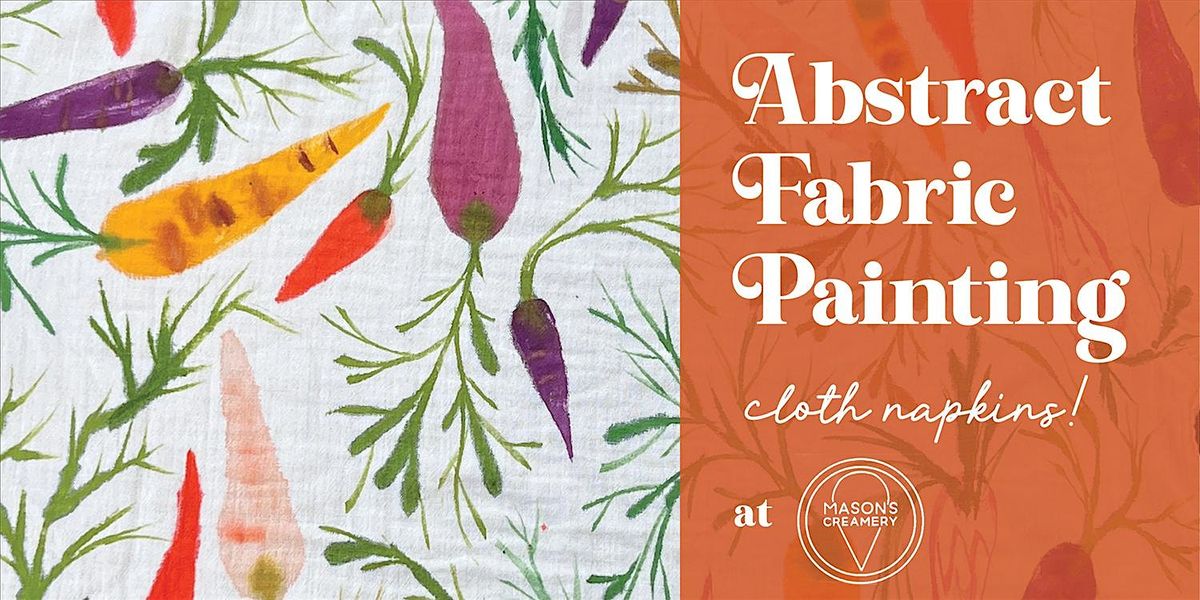 Sustainability has never been cuter. At this abstract fabric painting class, we'll explore mark-making techniques and use fabric paint to paint our own set of (4) cloth napkins. Unlike the puff paint from days of yore, this paint works more like watercolor, soaking into the fabric for a soft and comfy feel. I'll offer guidance along the way, but painters will have the space to choose their own adventure. Napkin sets of (4) will be provided in the color Oatmeal (light cream). No experience needed!