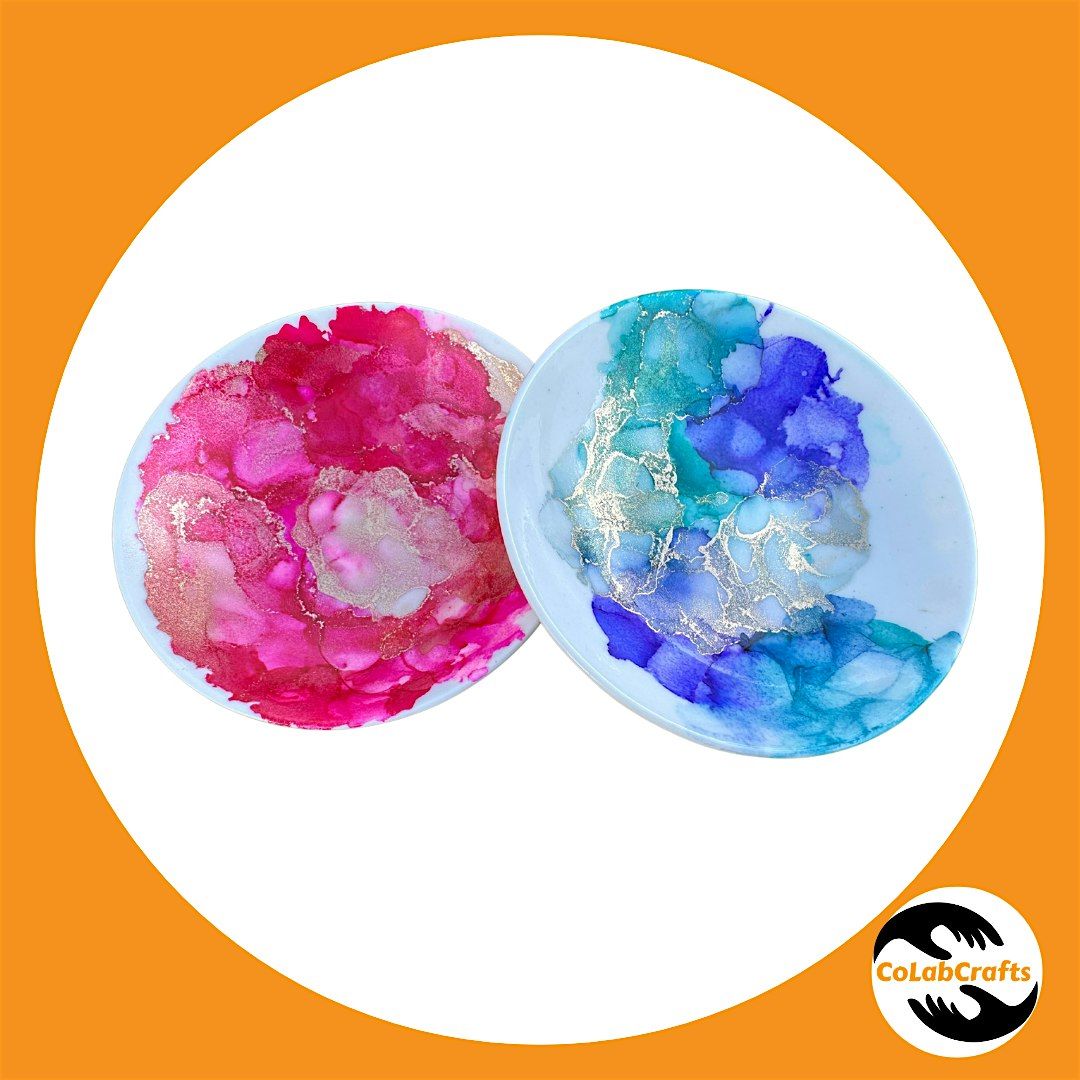 In this fun and beginner-friendly workshop, you’ll design three unique trinket trays using vibrant alcohol inks. Watch colors blend, swirl, and transform into stunning abstract patterns as you experiment with different techniques and color combinations. No experience needed—just come ready to play with color and create pieces that are both functional and beautiful. Ages: 14yo+