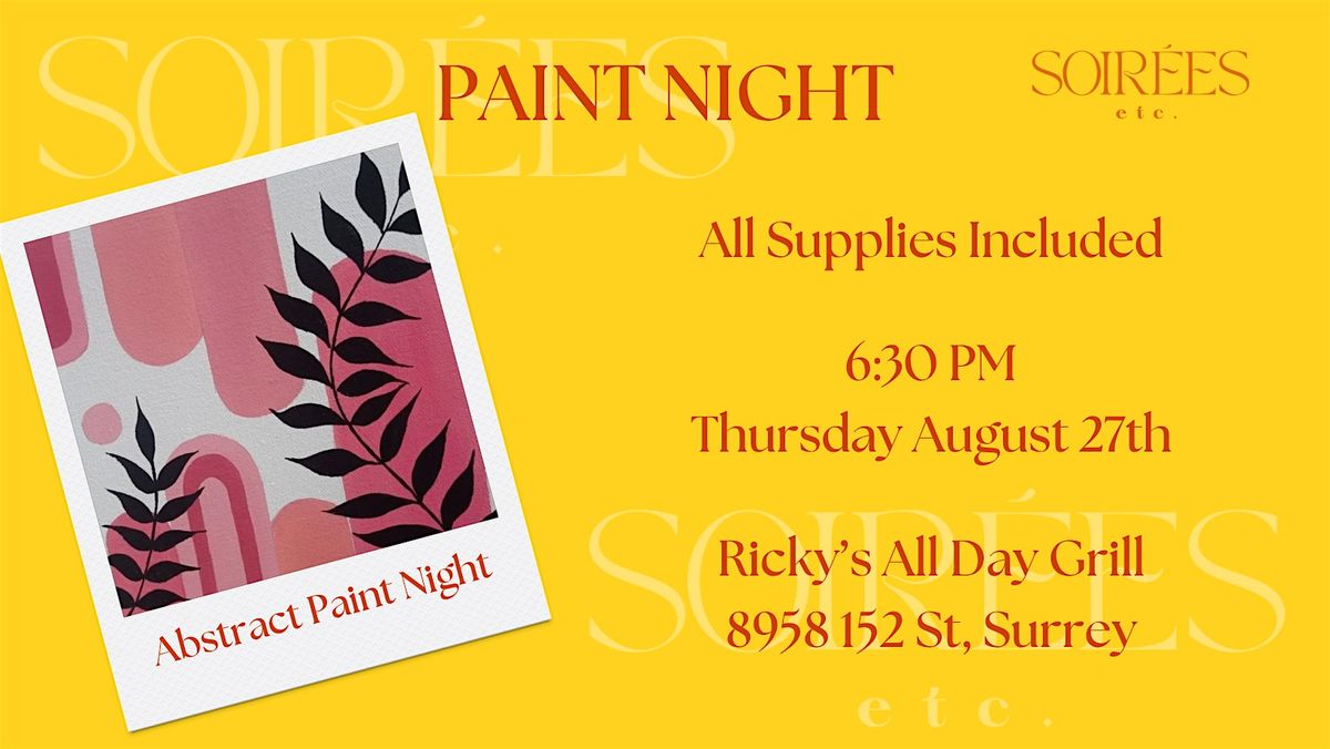This Abstract Paint Night features soft pink tones, bold shapes, and modern design elements for a fun and creative evening.