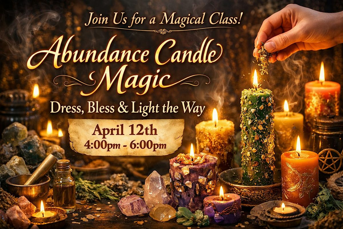 You’ll learn what goes into a dressed ritual candle, why herbs and oils matter, how to set your intention clearly, and how to work with a candle in a way that feels personal and meaningful. Then you’ll create your own abundance candle to take home and work with.