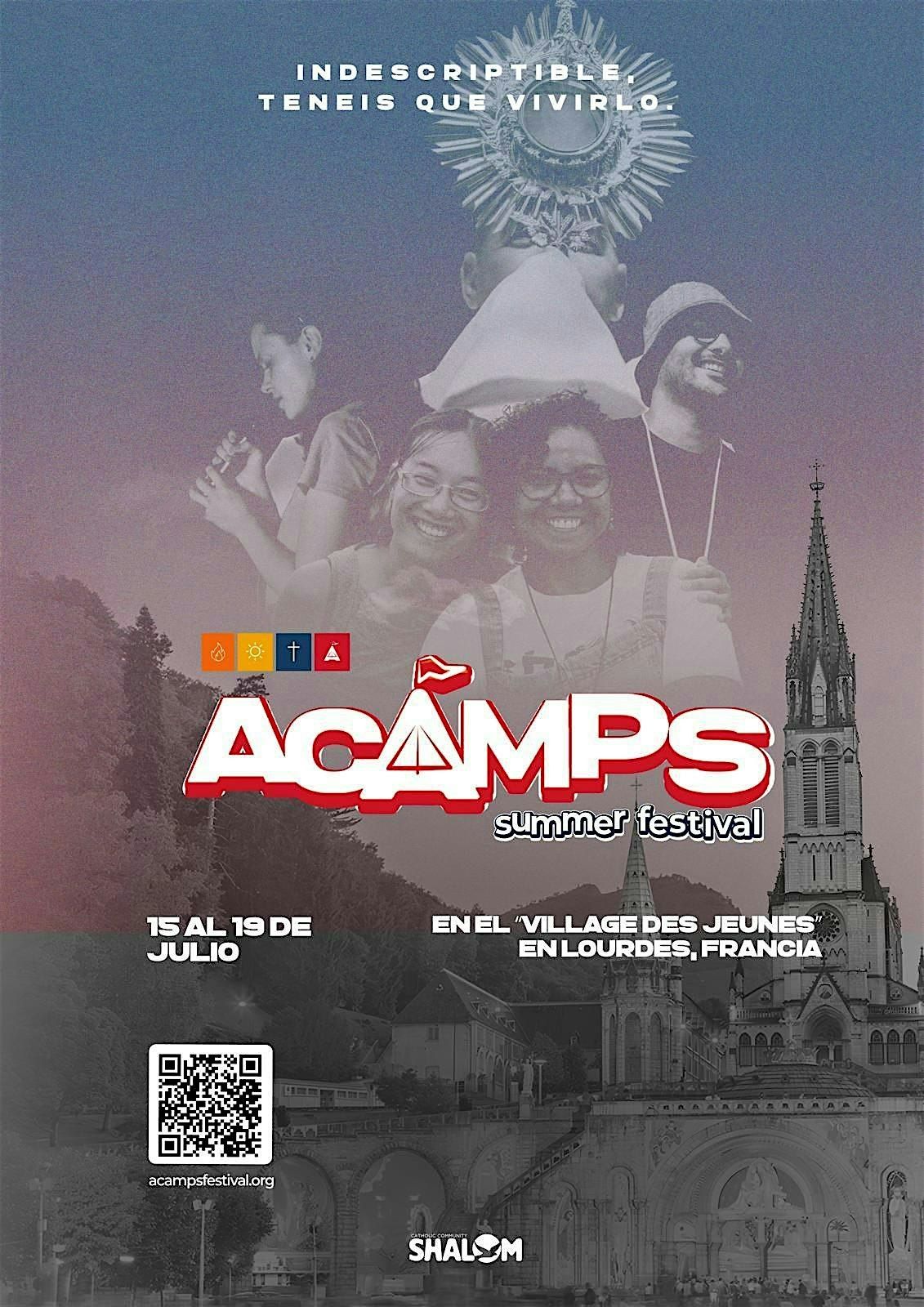 ACAMPS es un espacio para reír, profundizar, hacer amigos, vivir experiencias inolvidables y dejar que Dios sorprenda tu corazón en uno de los lugares más especiales: Lourdes - Francia ✨