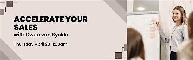 Join us April 23, 2026 at 11:00 AM (Eastern Time) for an exciting in-person event all about proven strategies to accelerate your business. Get ready to boost your sales skills with Owen van Syckle in a fun and casual setting. Don’t miss this chance to learn practical tips and connect with others looking to level up their sales game!