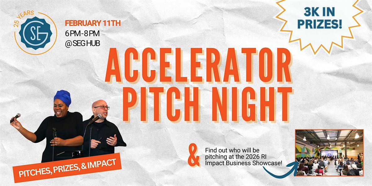 Get ready for an electrifying night of innovation and entrepreneurship at 10 Davol Sq unit 100, Providence, RI 02903! Join us for SEG's Accelerator Pitch Night packed with game-changing ideas, all in a vibrant and supportive atmosphere.