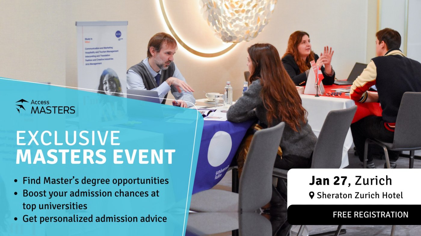 Looking to launch an international career and stand out in the competitive job market? Discover your perfect Master’s degree fit at the Access Masters event in Zurich on 27 January at the Sheraton Zurich Hotel. This exclusive one-to-one event is tailored for recent graduates and young professionals ready to accelerate their future.