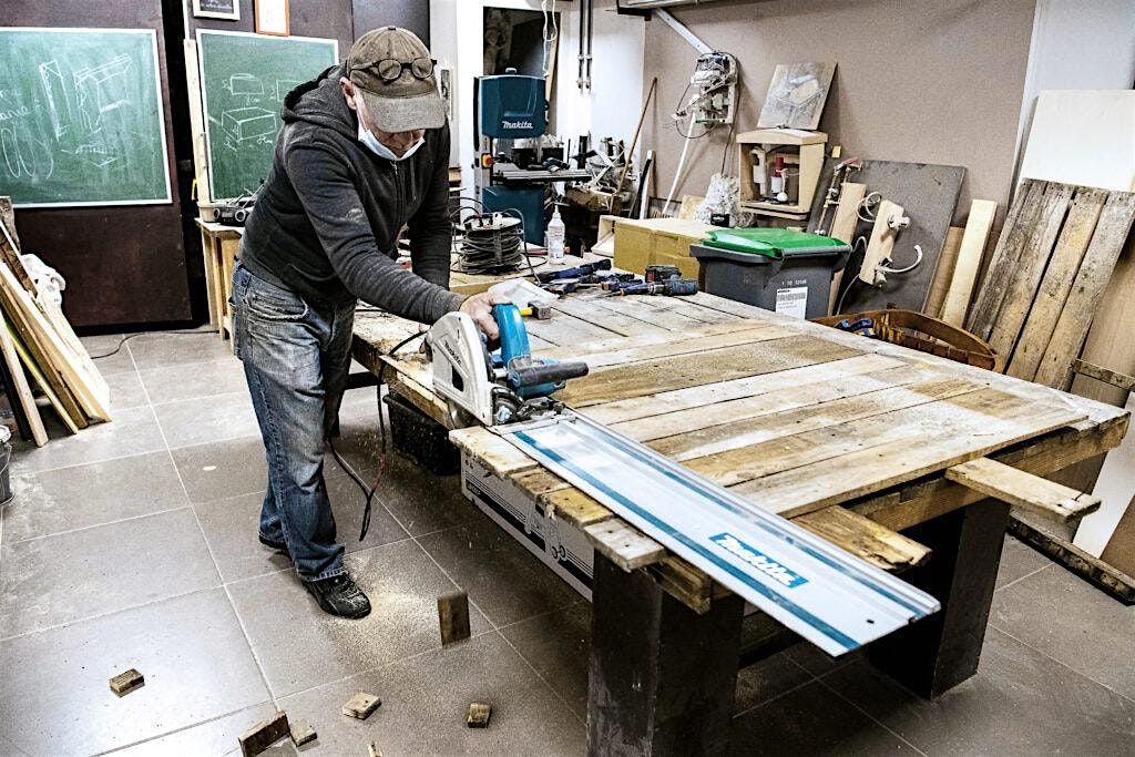 Venez-y rencontrer Pascal, notre chef d'atelier qualifié qui vous aidera dans la conception et la réalisation de votre projet autour du bois. Depuis le dessin des plans, la manipulation des outils (manuels et stationnaires), jusqu'aux coloris et la patine du bois, vous pourrez demander conseil et travailler avec la supervision d'un artisan hors-pair. Vous pouvez venir avec votre meuble ou votre bois, apporter vos propres outils si vous les préférez (on est bien équipés !), ou simplement venir avec vos mains, vos idées et votre stylo pour penser autour d'une feuille blanche !