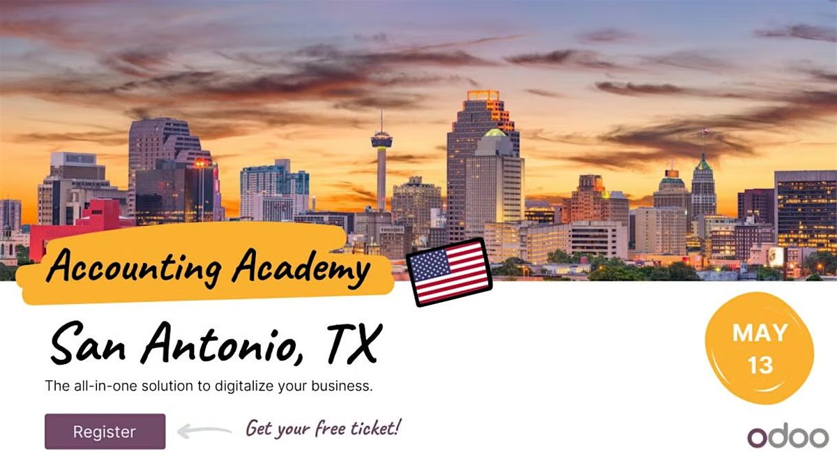 Welcome to the Odoo Academy in San Antonio! Join us for an exciting in-person event focused on enhancing your skills with Odoo.