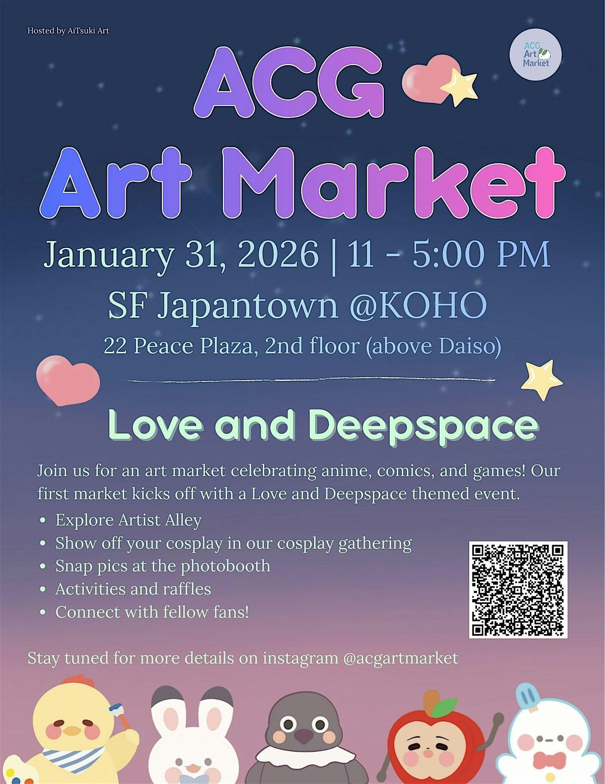 Our ACG (Anime, Comic, and Game) Art Market is almost here with our first Love and Deepspace theme.