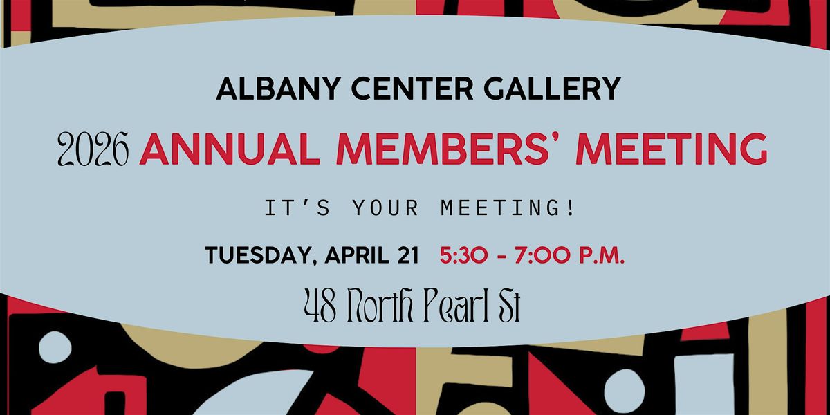 Did you know that members of Albany Center Gallery get a vote? There will be a presentation of the Fiscal Year (FY) 2027 Slate of Board Officers & Directors to vote in. 10% of ACG’s membership needs to be present for this to go into effect.