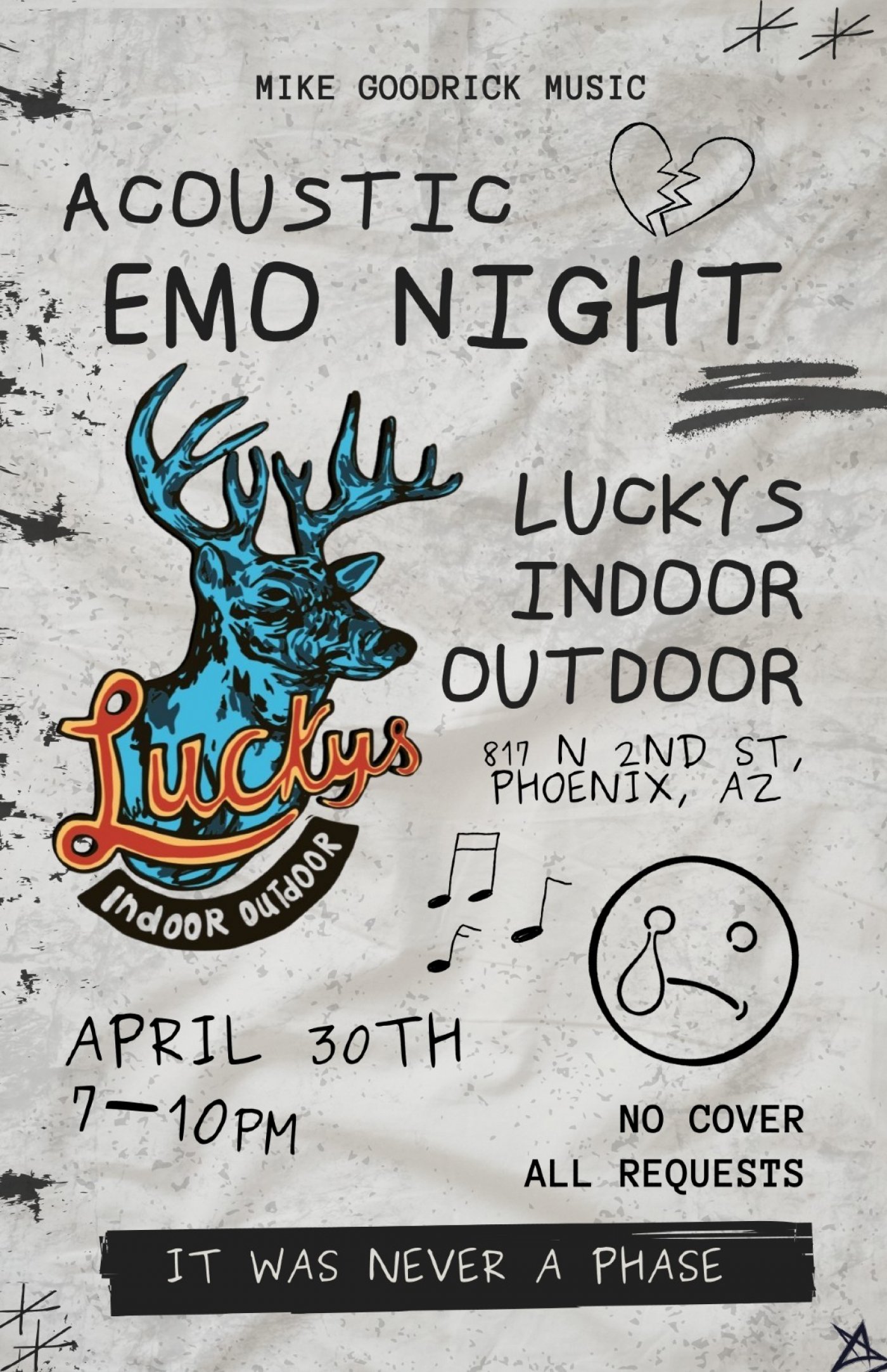 Acoustic Emo Night is bringing the ultimate nostalgic experience to Downtown Phoenix at Luckys Indoor Outdoor. This is not your typical bar night—it’s a destination live music event where the crowd completely takes over the setlist. Featuring Mike Goodrick performing acoustic arrangements of your favorite 2000s anthems, this evening is dedicated to raw energy, community, and massive sing-alongs.