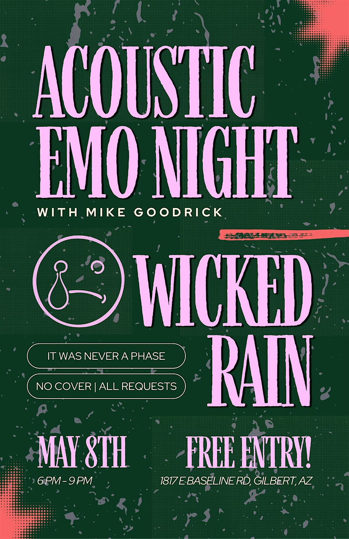Get ready to sing your lungs out in Gilbert. Wicked Rain is hosting a dedicated Acoustic Emo Night, bringing the best of the 2000s scene straight to your table. This isn't a DJ set—it is an entirely crowd-sourced, all-request live acoustic show. Bring your friends, grab a top-tier craft beer from their massive tap list, and help curate the perfect emo playlist live.