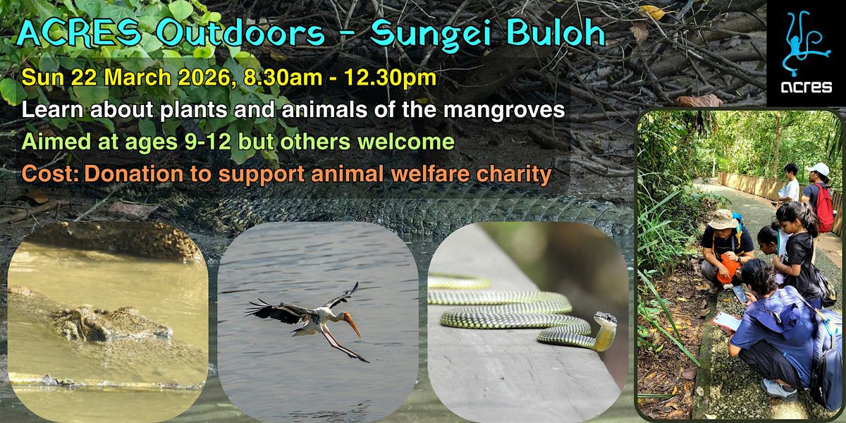 ACRES Outdoors aims to help children learn how to behave in a safe way in a natural environment whilst forming a connection with nature. Join us to learn more about the plants and animals of the mangroves at Sungei Buloh.