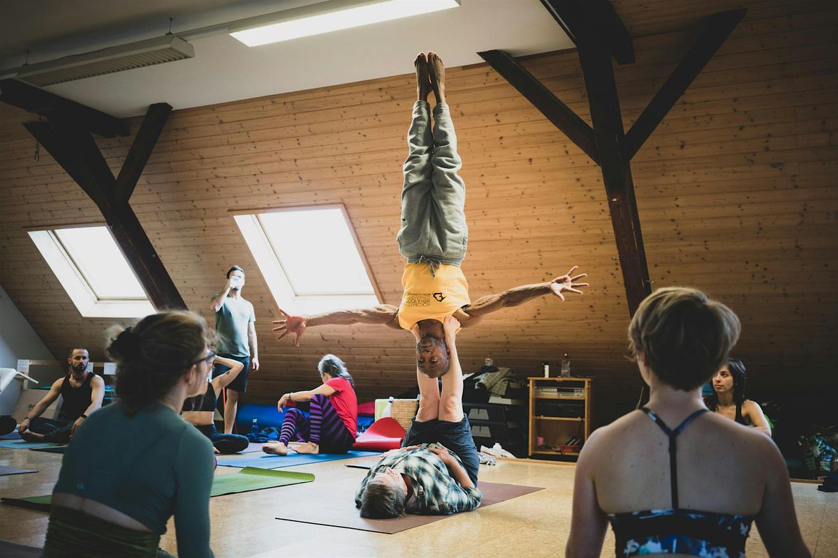With a strong emphasis on inversions, balance and progressive partner work, this is designed for people who want to expand their practice beyond the usual class format. It will naturally appeal to acroyogis, acrobats, aerialists and gymnasts - but it is just as relevant for those coming from yoga, calisthenics, gymnastics, CrossFit, Hyrox or general strength and mobility training backgrounds.