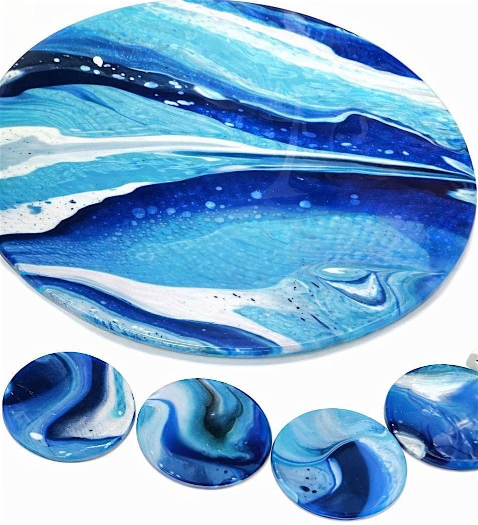 🌊🎨 Acrylic Pour + Resin Lazy Susan & Coaster Set Class! 🎨🌊