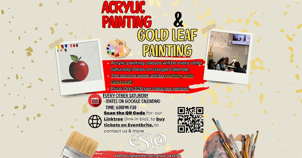 This is a skill based acrylic painting class for beginner and intermediate painters. Classes are every other Saturday, one Satuday a month being gold leaf painting!