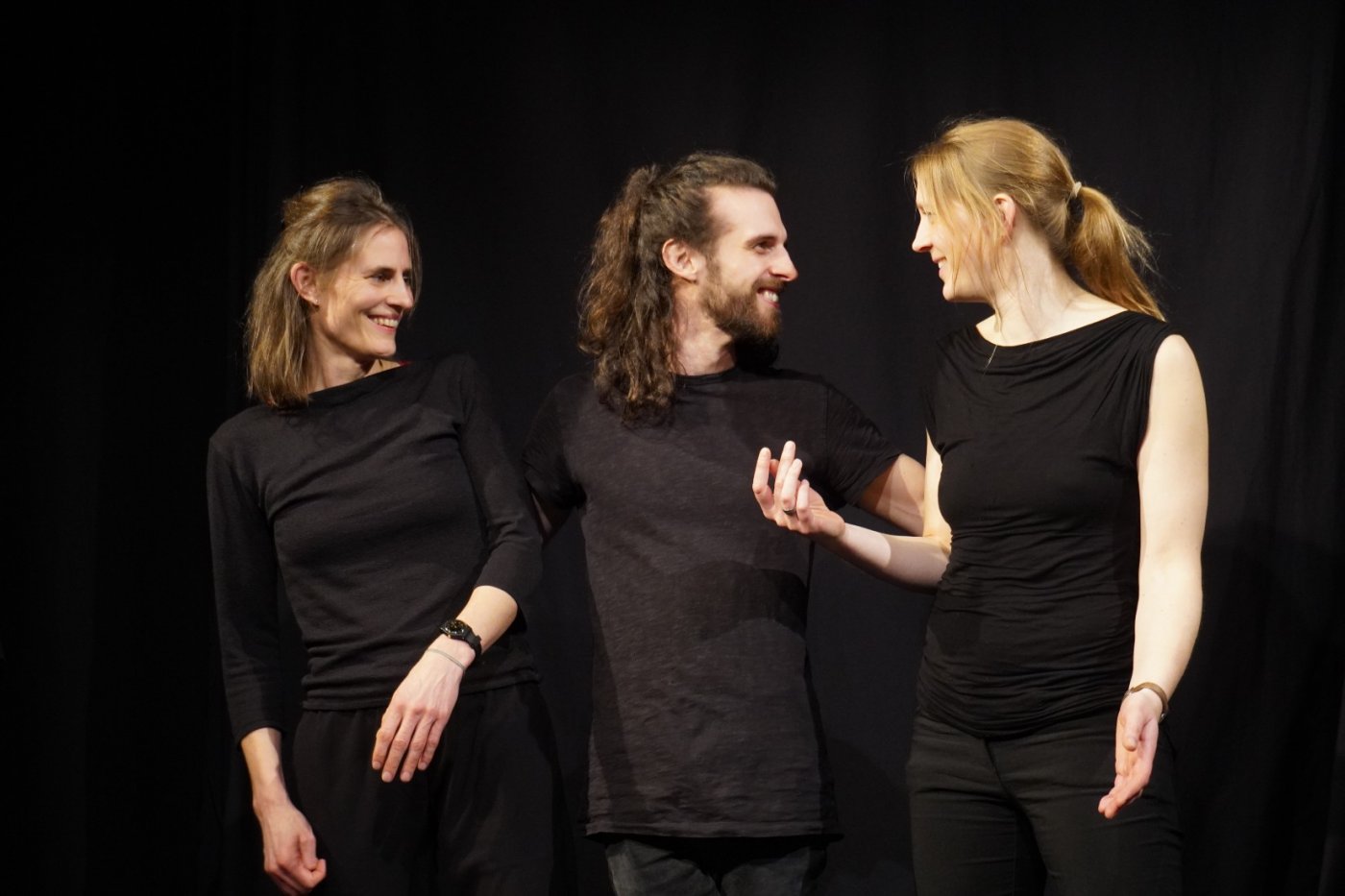 Unsere Impro-Shows bestehen immer aus zwei Halbzeiten: In der ersten zeigen wir dem Publikum ein Langform-Format. Das bedeutet, es gibt einen Reigen von Szenen, der auf irgendeine Weise miteinander zusammenhängt. Mal über ein Thema, zu dem ihr uns inspiriert habt. Mal über eine Geschichte, die sich durchzieht. Mal Figuren, die wieder auftauchen. Gemeinsam ist allen Langformen, dass sie Raum für die ganze Bandbreite des Erzählens lassen: atemlose Schnelligkeit genauso wie ruhigen Tiefgang, absurd Komisches genauso wie überraschend Berührendes. Weil es beim Improtheater keinen vorher festgelegten Plan gibt, kann alles passieren.