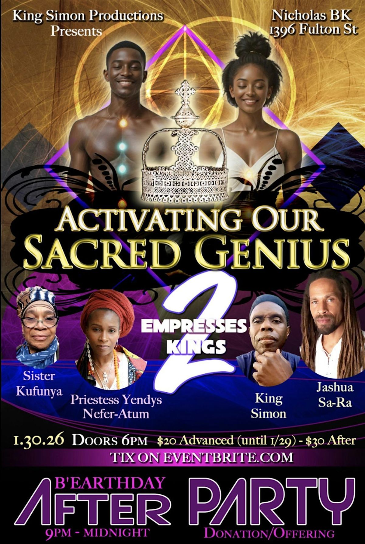 This special evening brings together 2 Empresses & 2 Kings for a collective activation centered on acknowledging our sacred greatness — individually and as a people.