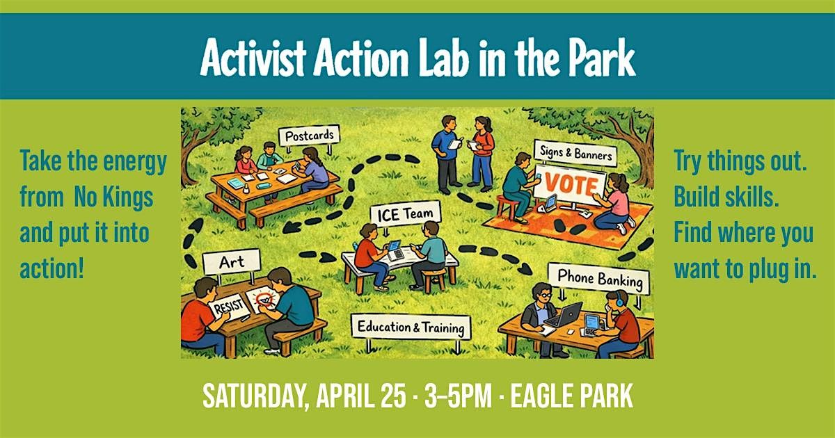 Join us in a Mountain View park for a hands-on action fair to explore what getting involved can actually look like and how to turn the energy from No Kings into action.