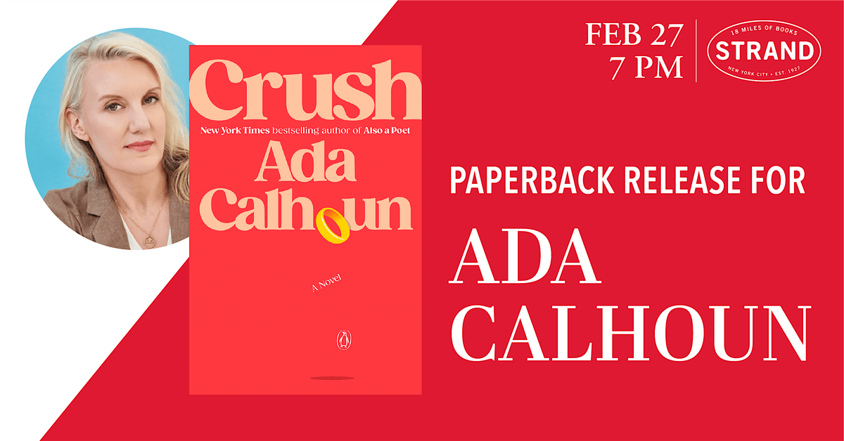 Ada Calhoun is the New York Times–bestselling author of Crush: A Novel, hailed on the Today Show as the month's Best Romance, praised by the Washington Post for its "whirlwind of desire and possibility," and named by TIME as one of the 100 Must-Read Books of 2025 and by ELLE as one of the 29 Best Novels of 2025. Her memoir, Also a Poet, the New York Times called “a contribution to literary scholarship, molten with soul." Past books include Why We Can't Sleep, Wedding Toasts I'll Never Give, and St. Marks Is Dead.