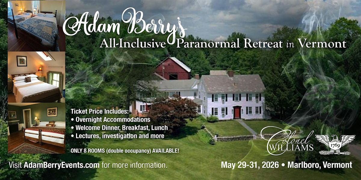 We are very excited to launch a first of its kind paranormal event for Adam Berry. Join Adam from Kindred Spirits and Ghost Hunters for a Boo-tique adventrue weekend in Vermont at the Colonel Williams Inn