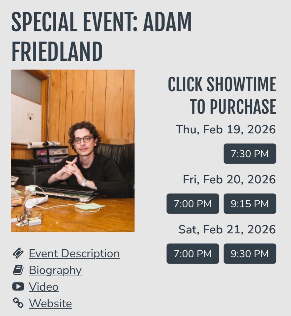 π Welcome to Adam Friedland at Cobbs Comedy Club, where the impossible becomes possible and dreams take flight! ποΈ Join us at Cobbs Comedy Club in the heart of San Francisco, CA for an event that will redefine your expectations. π On May 29th, 2026 at 07:30 PM, witness the transformation of space and time into something truly magical. β¨ It's a curated experience combining the best of innovation, entertainment, and community spirit, creating moments that will be remembered for years to come. Whether you're a first-time visitor or a seasoned enthusiast, prepare to be amazed. π Book now to ensure your place in this unforgettable experience!