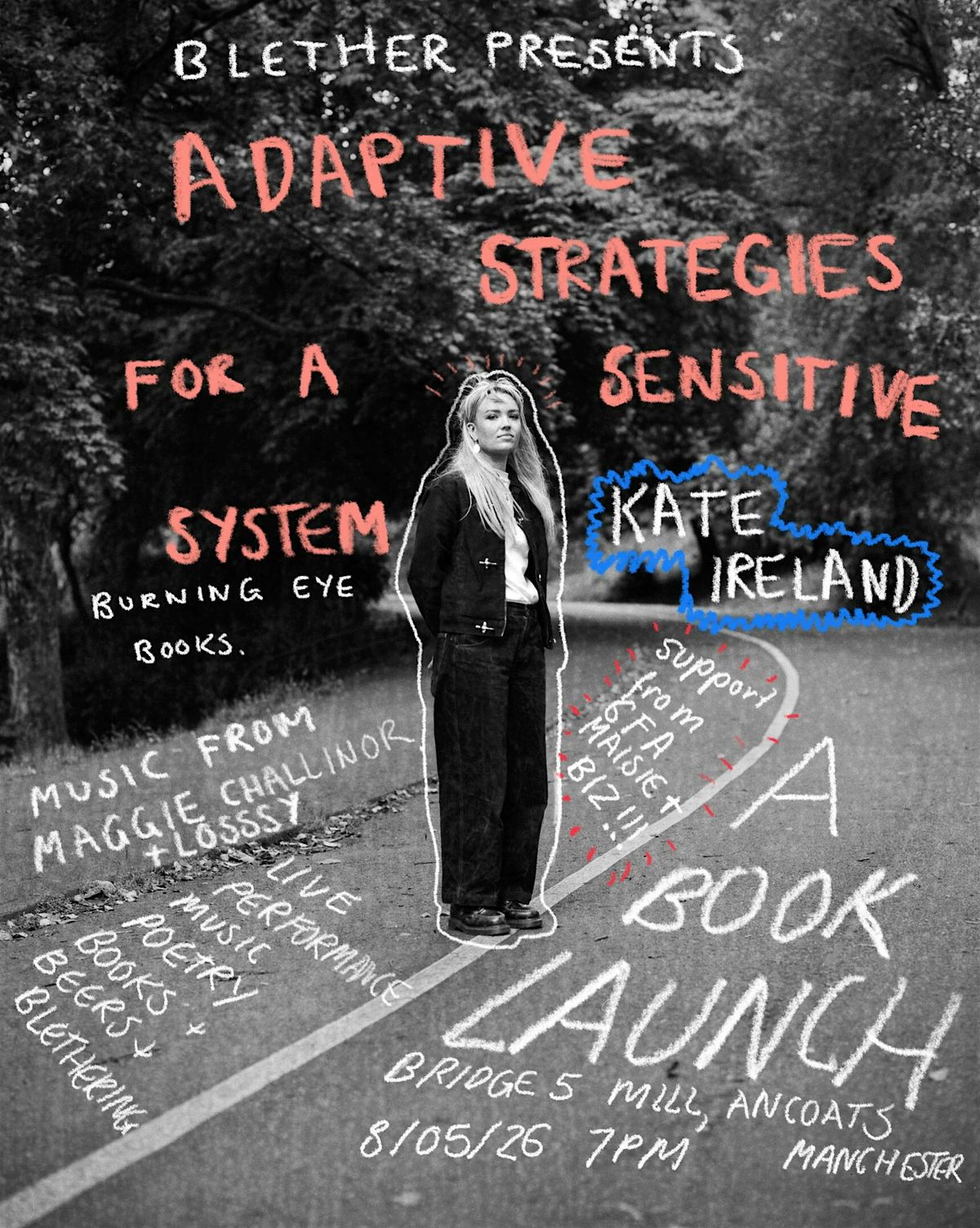 Blether is proud to present the launch of Kate Ireland’s debut collection of poems, stories and secrets: Adaptive Strategies for a Sensitive System, published by Burning Eye Books.