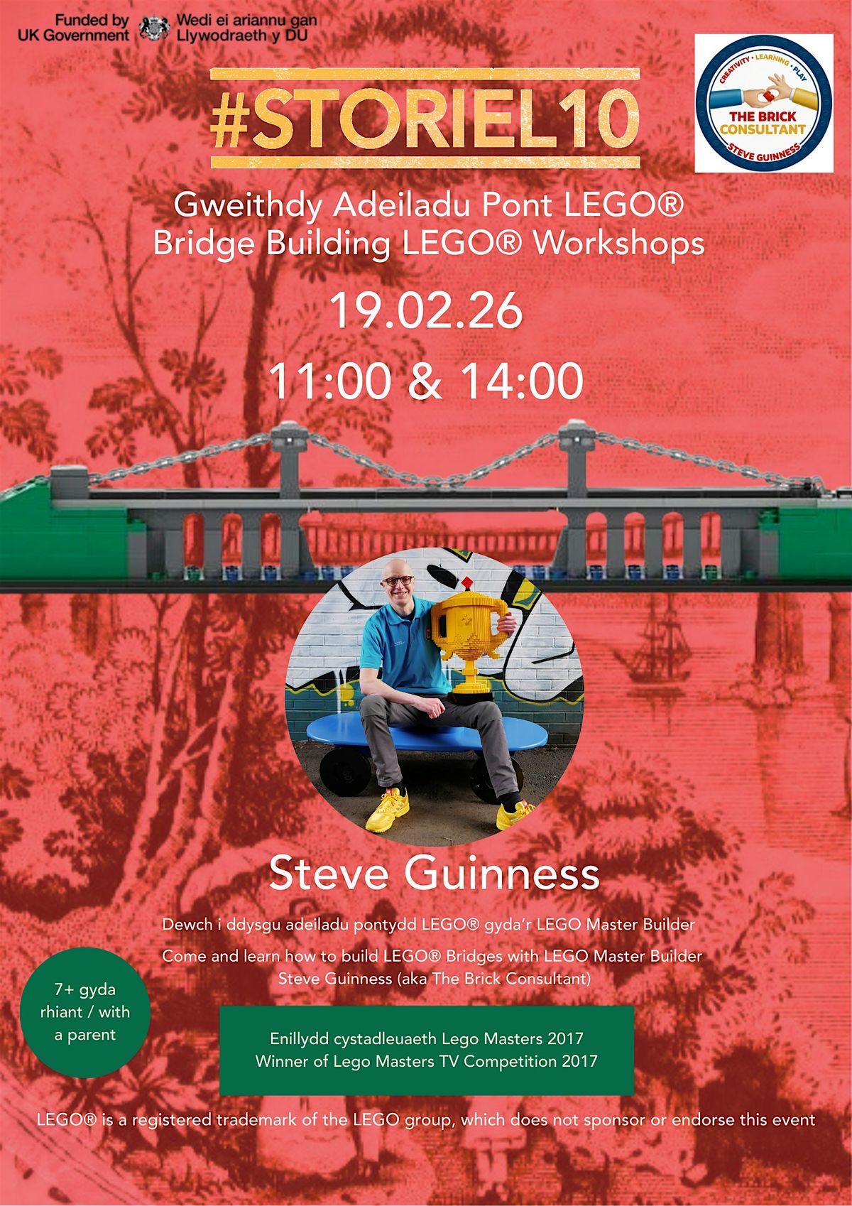Fel rhan o gyfres o weithgareddau hanner tymor Dathliadau Storiel 10 mae'n fraint cael croesawu Steve Guiness y Brick Consultant i’r amgueddfa i gyflwyno gweithdy addysgiadol a hwyl i’r holl deulu.