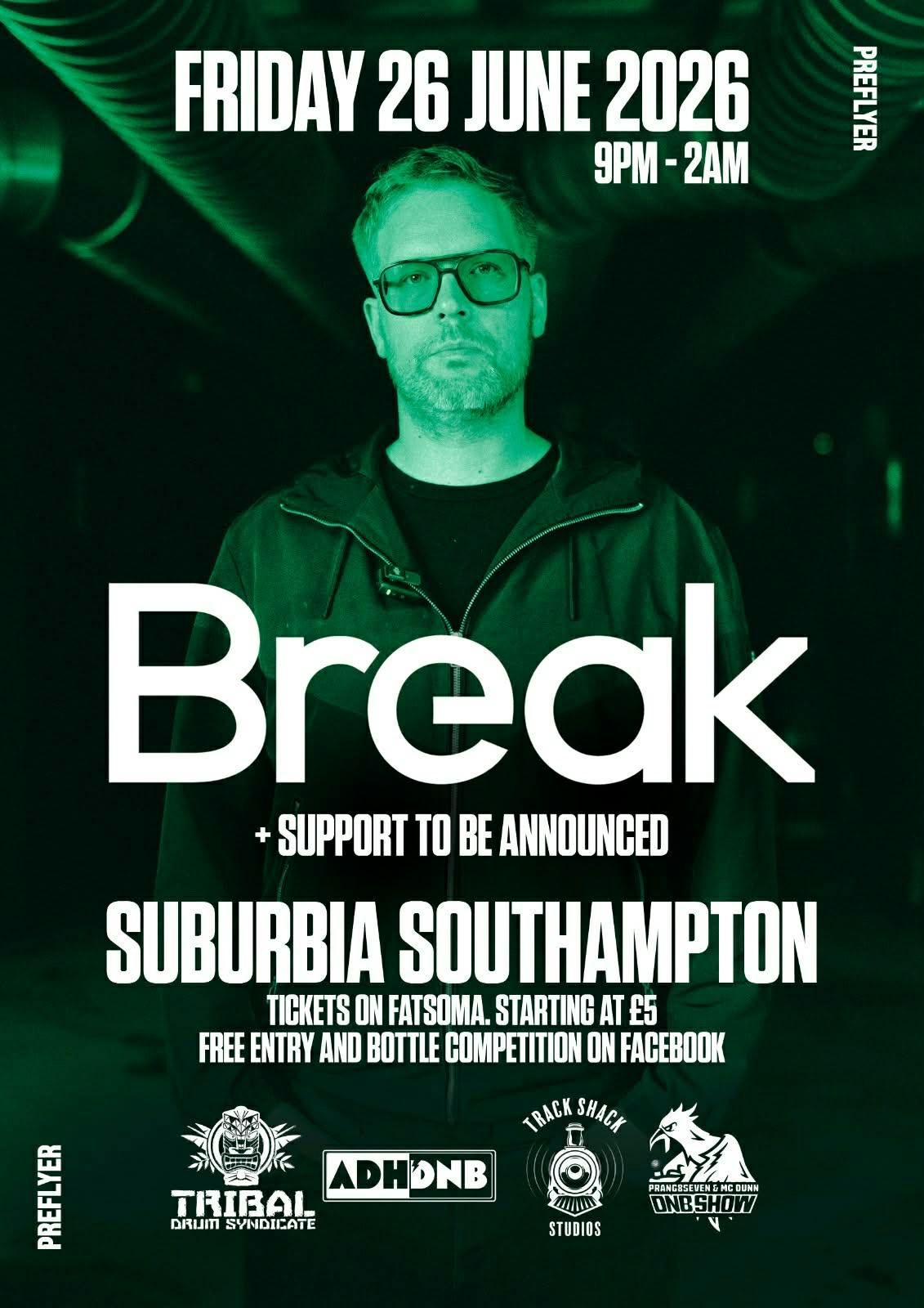 ADHDNB x PND x TDS x TSS PRESENTS: BREAKTaking the underground scene by absolute storm individually, these 4 brand have joined forces to give you ravers a once-in-lifetime opportunity by bringing the legend that is DJ BREAK down to perform at SUBURBIA SOUTHAMPTON.