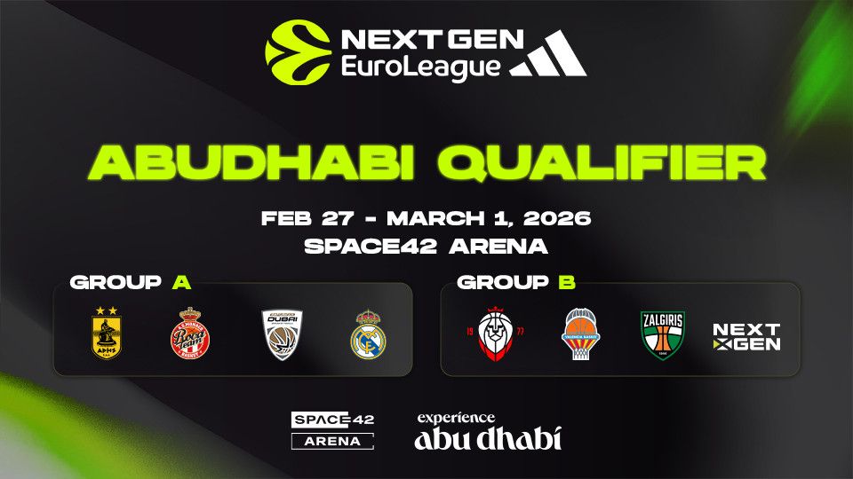 The Adidas NextGen EuroLeague Qualifier arrives in Abu Dhabi from 27 February to 1 March at Space42 Arena, bringing together eight elite U18 club academies from across Europe and the Middle East.