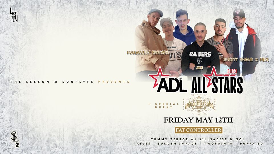 The Lesson & Soflyfe present another classic local Hip Hop party! Off the back of The New Wave & The 2022 SA Block Party, we bring you ADL All-Stars. A line up consisting of the best young hot rap acts from Adelaide. A triple headline from Jab, Falmouth Records & Shotty Shane x F6IX is guaranteed to bring the house down. Plus ADL's #1 new era MC indigomerkaba will be making a special guest appearance on stage, supported by Tommy Terror & Crew, Talles, Sudden Impact, TwoPoint0 and Puppa ED, this will be the biggest SA Hip Hop party in 2023. Don;t miss out!
