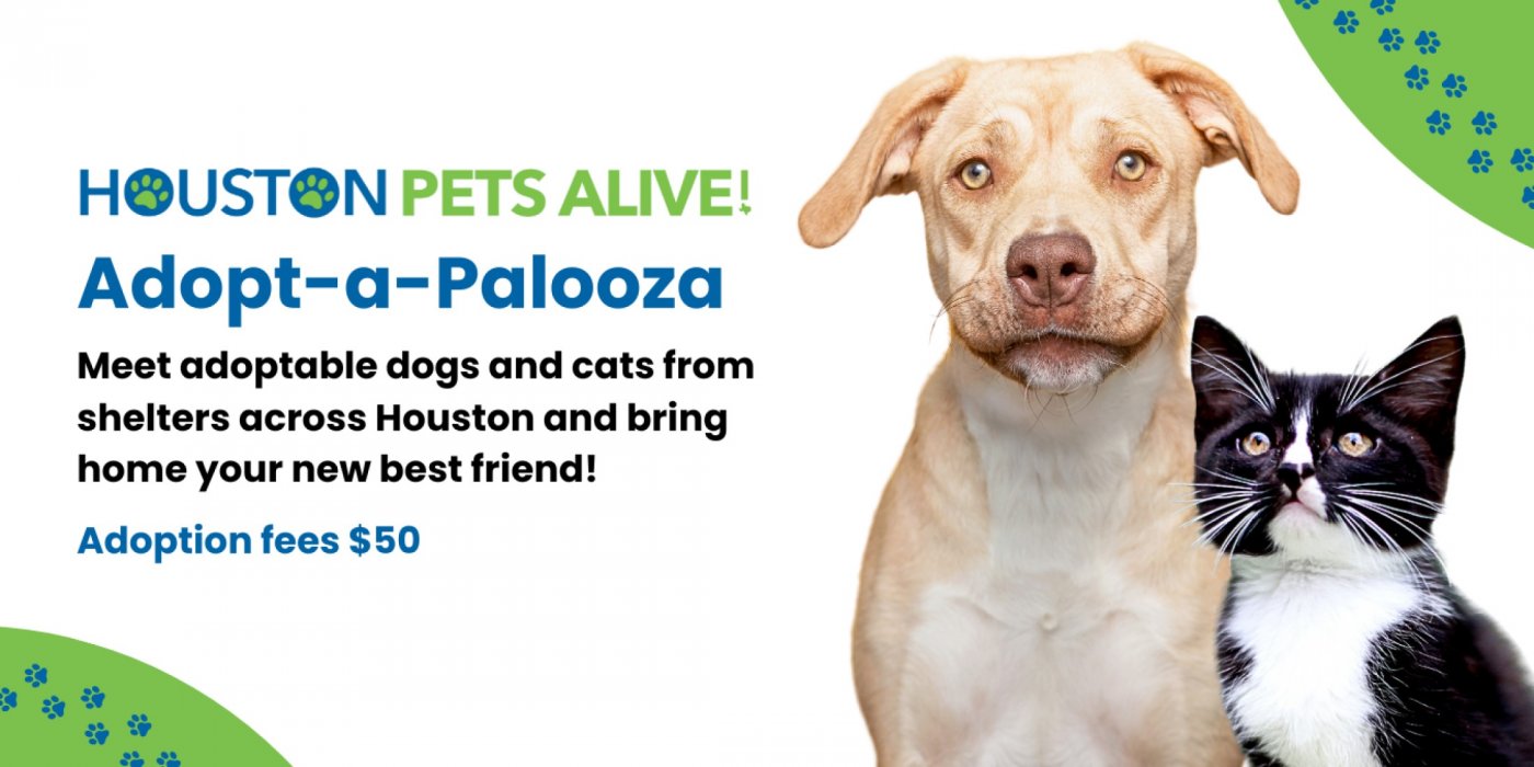 Looking to adopt a dog or cat in Houston? Adopt-a-Palooza brings together adoptable dogs and cats from multiple Houston-area shelters, all in one place and ready to find homes. Each Adopt-a-Palooza event features a wide variety of pets, including puppies, dogs, kittens, and cats of all ages and sizes, making it easy to find your perfect match. Adoption fees are $50, and all animals are spayed or neutered, vaccinated, microchipped, and ready to go home.