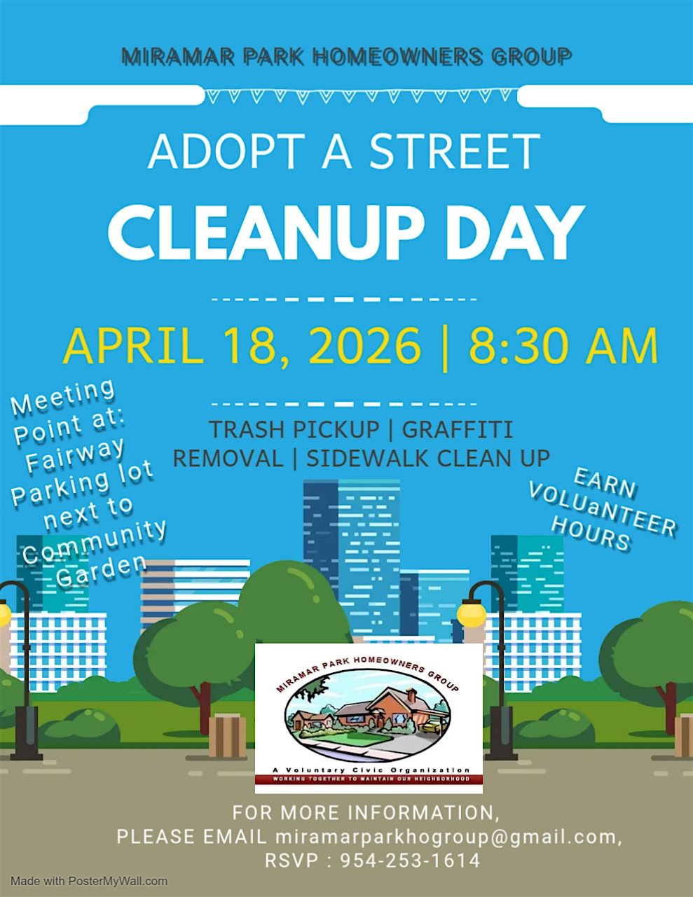 Join Us to team up to Clean Up & for the Adoption of Island Dirve South of Miramar Parkway. Earn Volunteer Hours and meet neighbors.