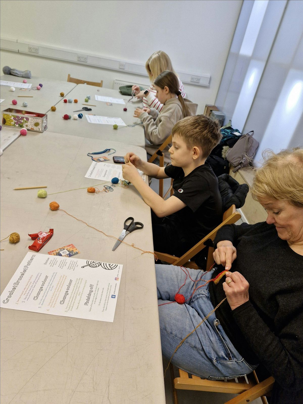 All materials are provided and you will each leave with your own hook to keep on using what you have learnt to crochet at home.