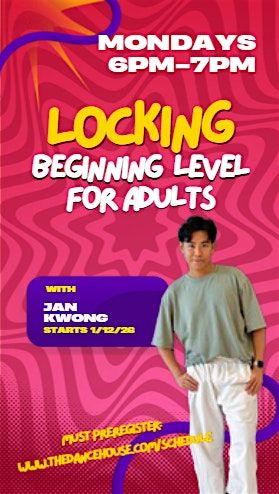 Every Monday at 6pm, starting 1/12/26, join Jan and learn all about Locking! Enjoy dancing, getting a great workout, and learning more about hip hop dance culture!