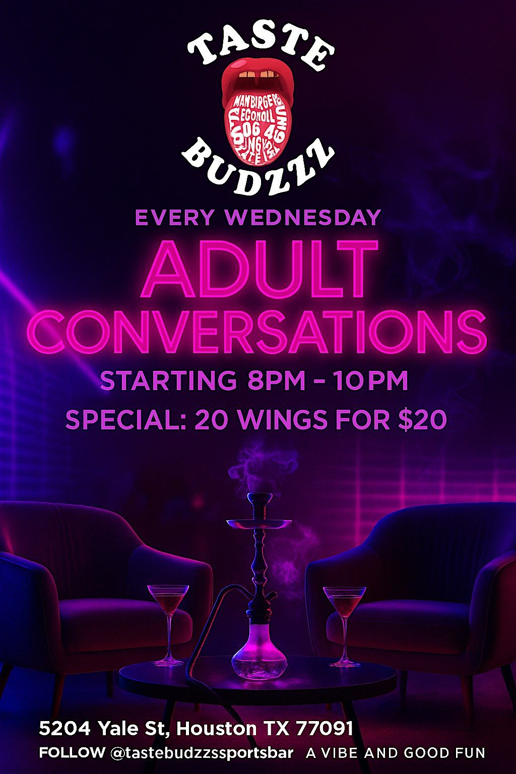 Hey there! Join us for some fun and engaging adult conversations at Taste budzzz sport bar and grill. Let's chat, laugh, and unwind together.