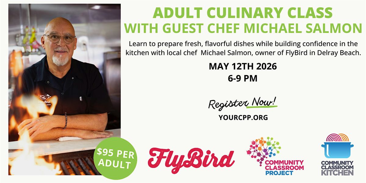 Join us for a special hands-on cooking experience with guest chef Michael Salmon, owner of FlyBird in Delray Beach. Known for his bold flavors and fresh ingredients, Chef Michael will guide participants through a thoughtfully curated and delicious menu designed to inspire confidence in the kitchen.