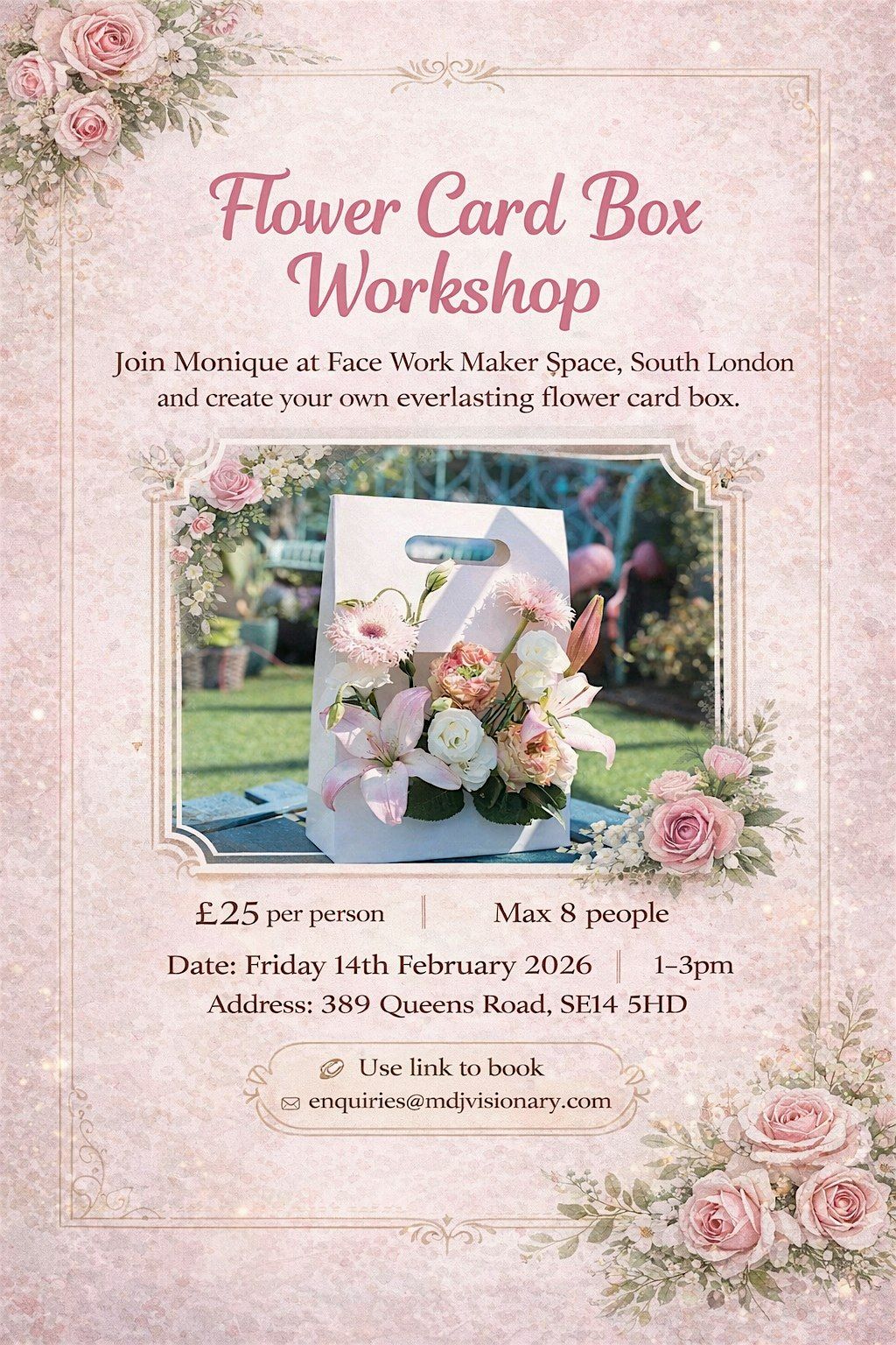 Come and join Monique at Face Work Maker Space in South London to create your very own everlasting flower card box.