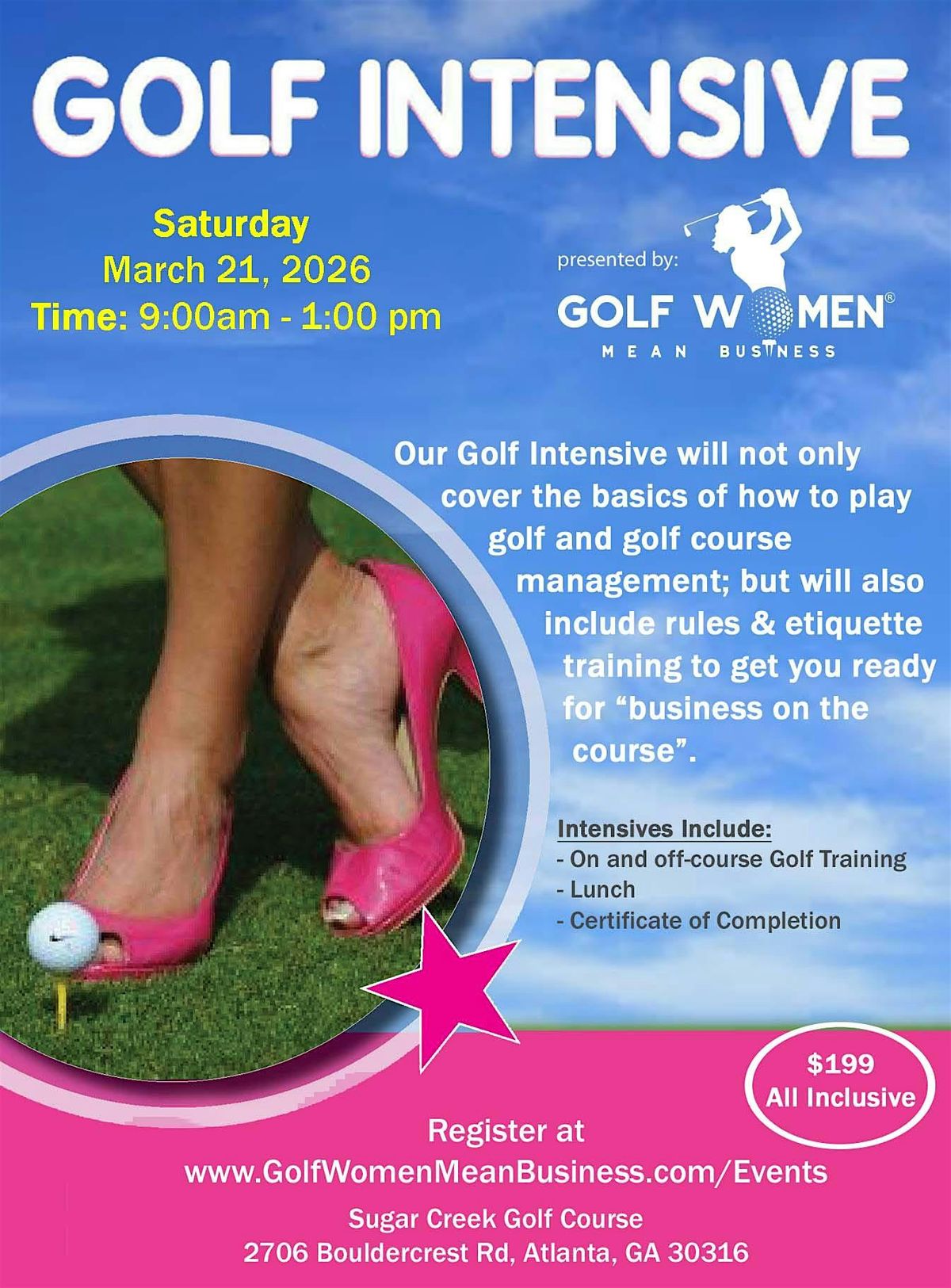 Cost: $199 and includes instruction, lunch, and golf clubs