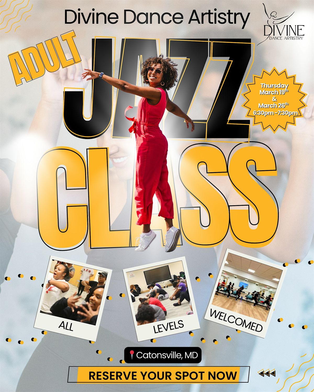 Ready to shake off the stress? Join us at Revolve Wellness Studios on March 19, 2026 at 6:30 PM Eastern Time for a fun and energizing adult jazz class. Whether you’re a seasoned dancer or just looking to move your body, this class is all about moving, laughing, and feeling great. Don’t miss out on some good vibes with great community—see you on the dance floor!