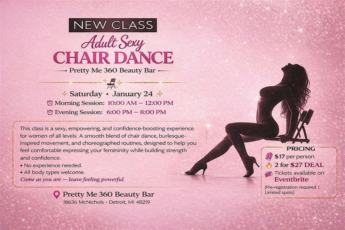 Join our Adult Sexy Chair Dance Class – the perfect way to boost your confidence and have a blast in person! No experience needed, just bring your energy and let's rock some sultry moves together. Great vibes guaranteed!