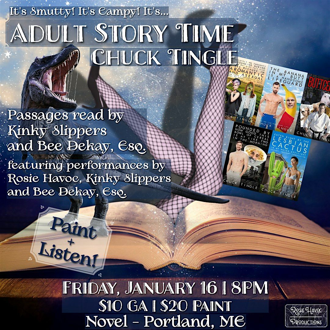 Join our host Kinky Slippers and Bee DeKay, Esq. as they do tingly readings from Chuck Tingle novels and short stories. In between each reading, featured performers Rosie Havoc, KinkySlippers and Bee Dekay, Esq. will bring the drag and burlesque performances!